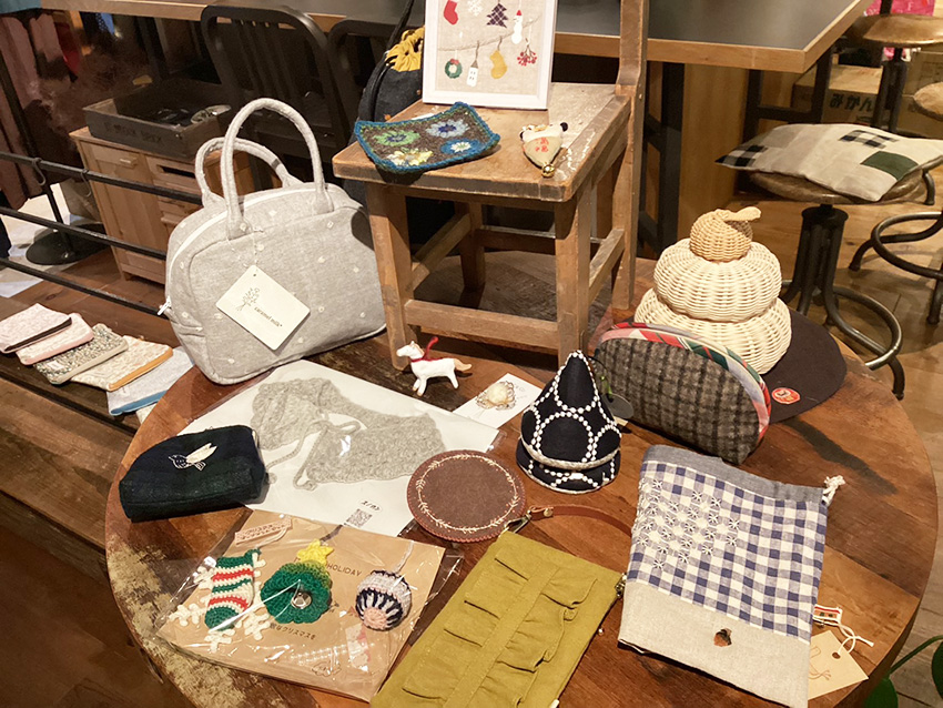 はじめましての作家さま、よろしくお願いいたします~。22組の作家さまの思い思いのLinen&Woolで店内がパーッと明るく華やかになりました。